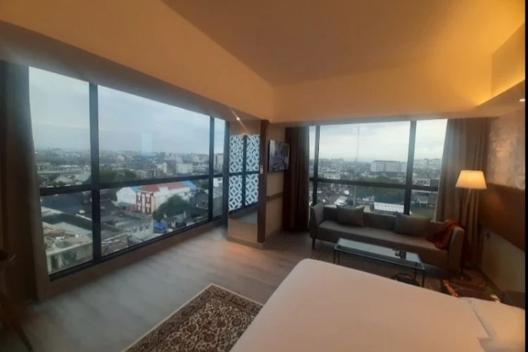 Kamar-kamar di hotel ini juga berukuran cukup luas dengan desain modern yang membuatnya terlihat bersih dan nyaman. Fasilitas di dalam kamar pun cukup lengkap, mulai dari teko listrik, mini kulkas, smart TV, AC, hingga berbagai fasilitas pendukung lainnya.
