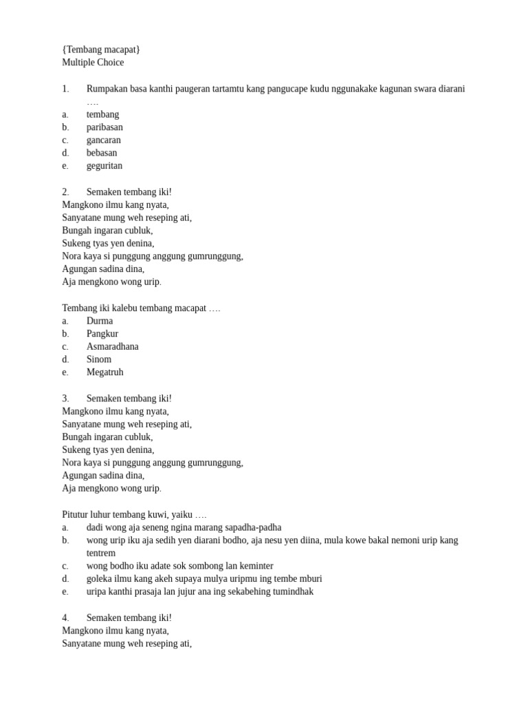 Soal-soal di bawah ini mencakup berbagai tema seperti pemahaman dasar ajaran Buddha, akhlak Buddhis, sejarah Buddha, praktik keagamaan, serta nilai-nilai Buddhis dalam kehidupan sosial.