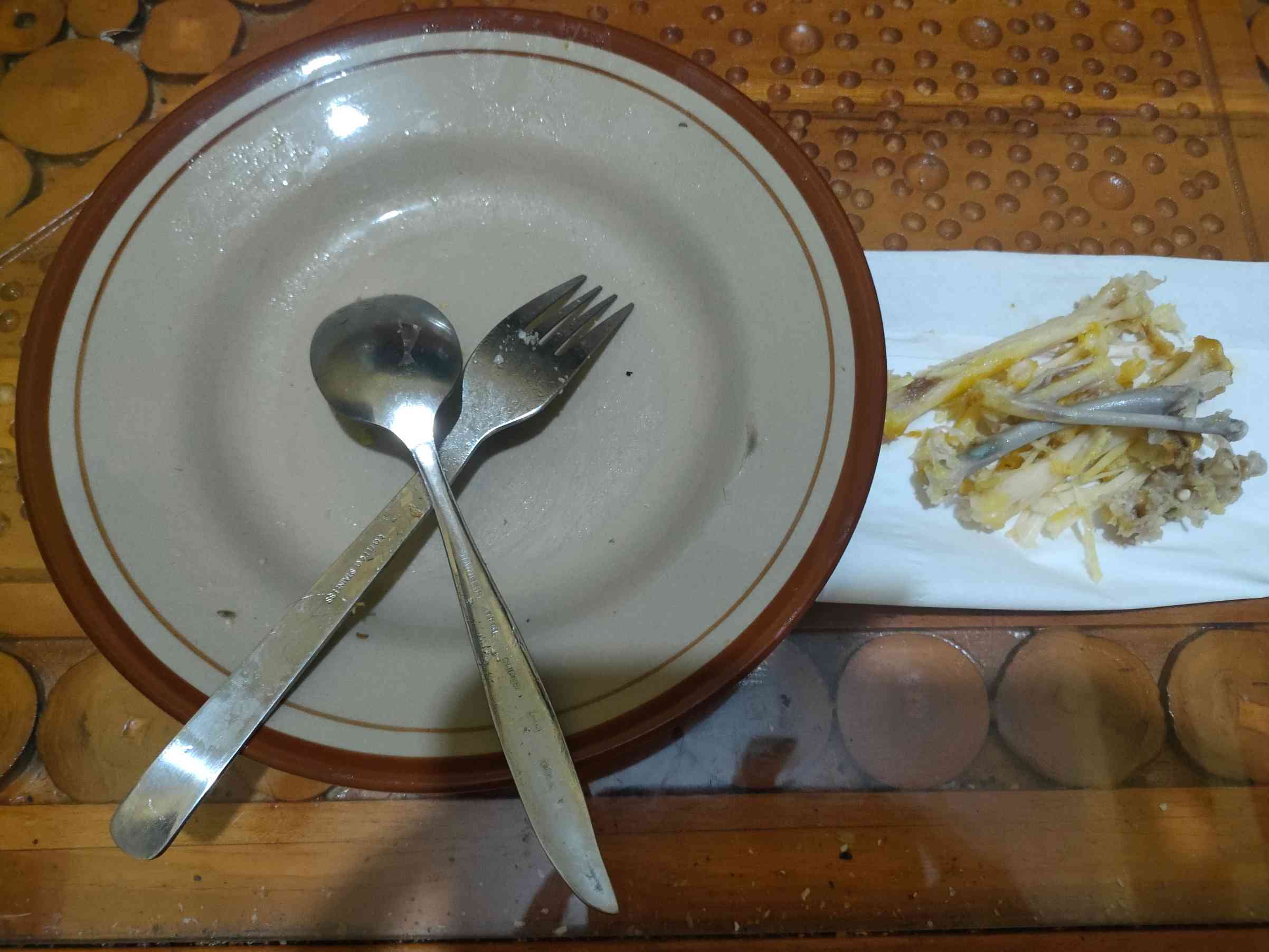 Mbahe selalu bersih saat makan, bahkan hanya sisa nasi pun ia habiskan. Ia juga menghabiskan lauk dan sayur hingga bersih. Piring yang digunakan terlihat bersih meskipun belum dicuci. Hal ini membuat istri saya terkesan.