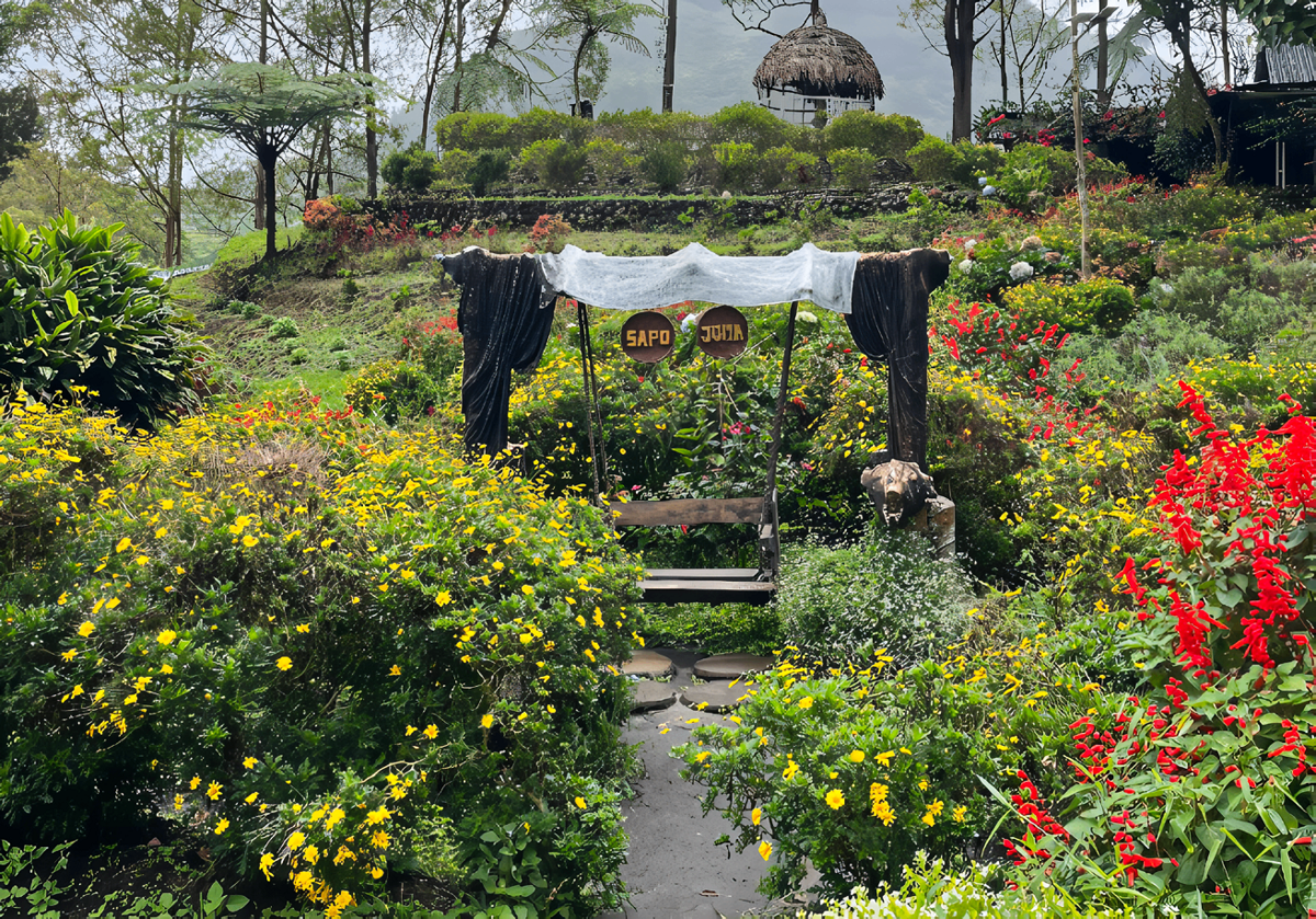 Sapo Juma menawarkan pemandangan Danau Toba dari ketinggian. Tiket masuknya sekitar Rp20 ribu, dan kamu bisa memilih banyak spot duduk yang nyaman untuk menikmati angin sejuk. Area ini juga memiliki taman bunga yang cantik, membuat suasana terasa lebih hidup dan fotogenik. Lokasinya sekitar satu jam perjalanan dari Berastagi, sehingga cocok untuk diselipkan dalam rute wisata sehari.