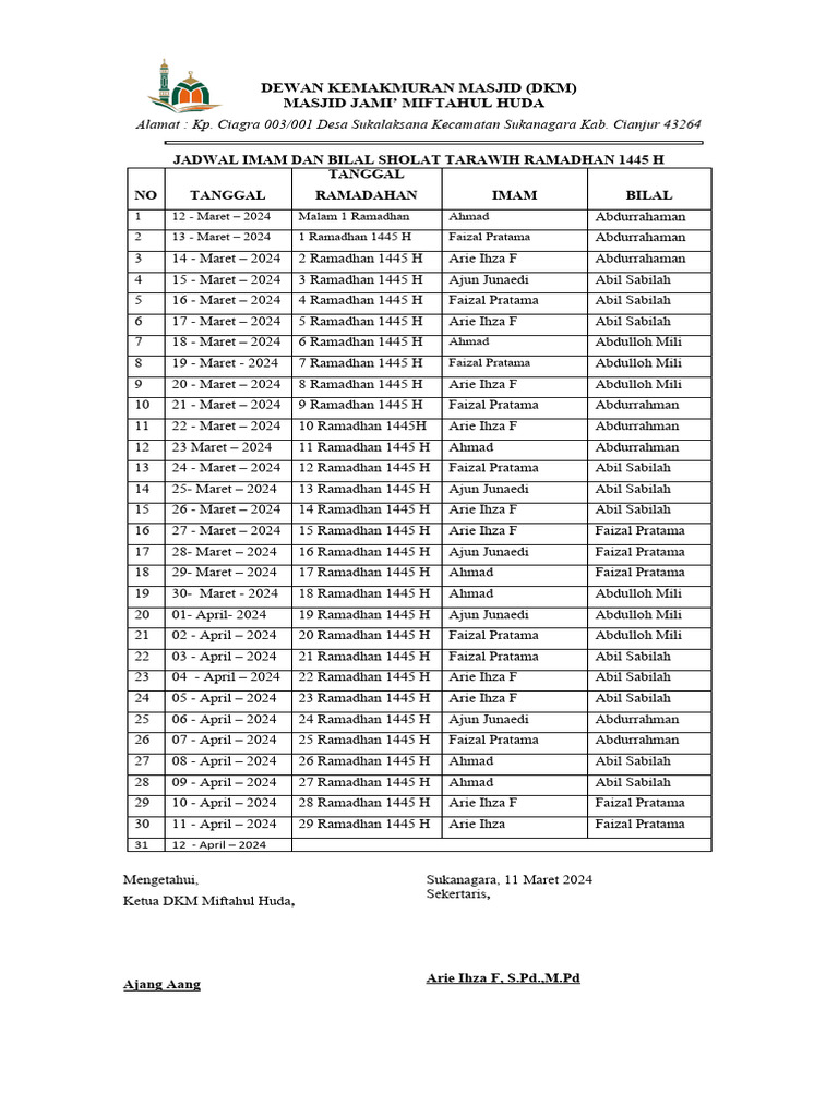 Jadwal Shalat Tarawih di Bulan Ramadan 1447 H