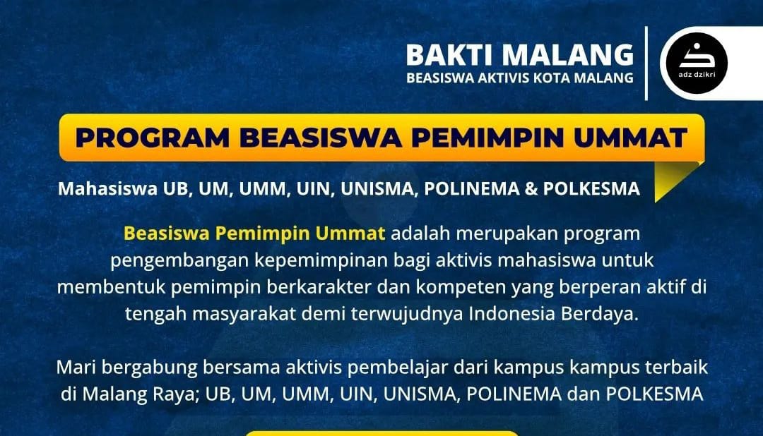 Beasiswa pendidikan 2026 ini merupakan program prioritas Pemkot Malang dalam mewujudkan Dasa Bakti Ngalam Pinter. Program ini diharapkan juga menjadi solusi dalam menekan angka putus sekolah di Kota Malang.