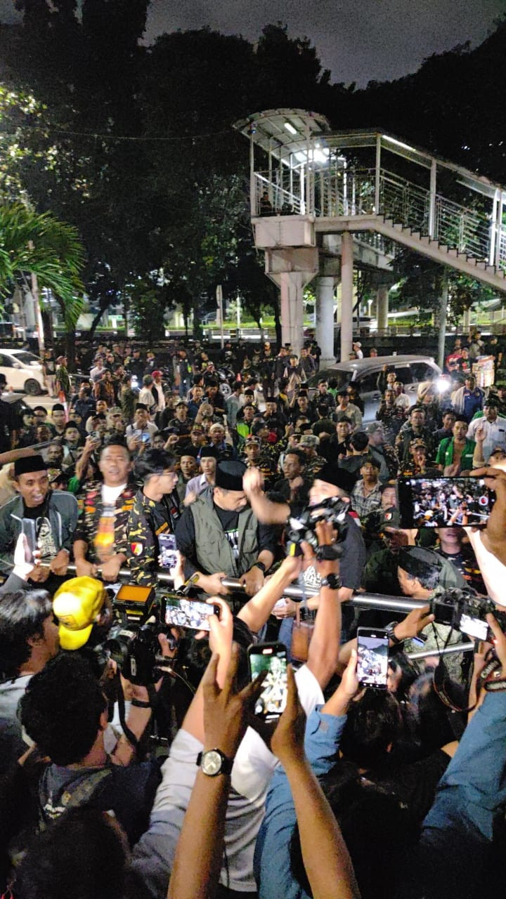 Saat melihat Gus Yaqut ditahan, massa Banser pun langsung bereaksi. Mereka berteriak “KPK zalim” sekaligus menyerukan dukungan terhadap Gus Yaqut. Massa juga sempat membakar sebuah baju bertuliskan KPK.