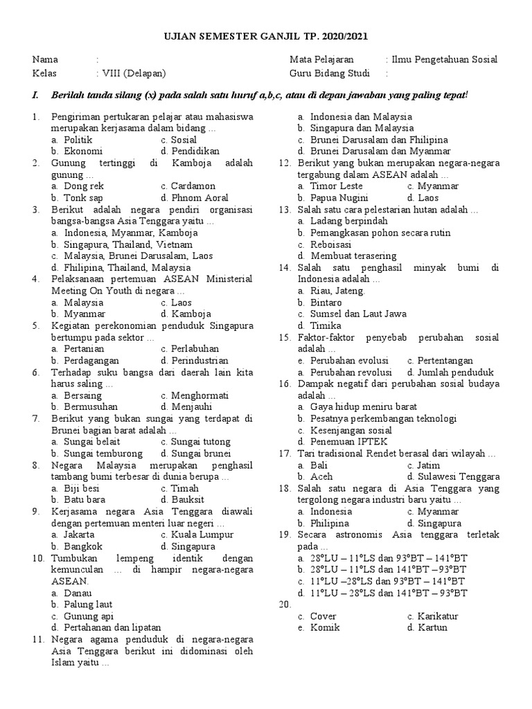 Mempersiapkan ujian Sumatif Akhir Semester (SAS) adalah langkah penting dalam proses belajar siswa. Salah satu cara efektif untuk mempersiapkannya adalah dengan berlatih mengerjakan soal-soal yang relevan. Untuk mata pelajaran Ilmu Pengetahuan Sosial (IPS) kelas 9, materi yang dipelajari dalam kurikulum merdeka fokus pada dinamika manusia dan perubahan. Materi ini mencakup beberapa tema utama seperti Perubahan Sosial, Ekonomi Digital, Tantangan Pembangunan Indonesia, dan Kerja Sama Dunia.